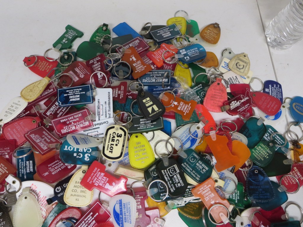Vintage Automotive keychain collection collector of 50+ years & Die cast Airplane Banks. Local car salesman collected keychains from where ever he went. www.KansasOnlineAuctions.com Auction starts Sunday and goes through Feb-3rd